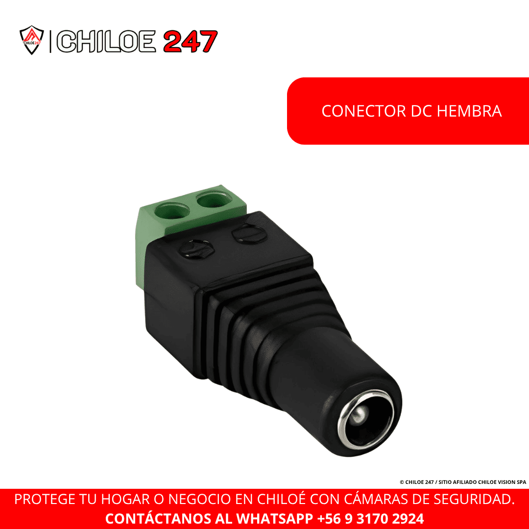 Los conectores DC hembra que ofrecemos son compatibles con los modelos más comunes en Chile, como el 5.5 mm x 2.1 mm, utilizados en cámaras IP, fuentes de alimentación, routers, tiras LED y otros dispositivos electrónicos. Gracias a su alta durabilidad y resistencia, nuestros conectores soportan el uso constante, protegiendo tus equipos de sobrecalentamiento y fallas eléctricas. Al elegir Chiloe247, estás confiando en un proveedor local que combina productos de calidad profesional, soporte técnico especializado y un servicio rápido y confiable en toda la isla de Chiloé. Ya sea para tu hogar, oficina, negocio o empresa, nuestros conectores DC hembra son la elección ideal para mantener tus sistemas funcionando de manera estable y segura.