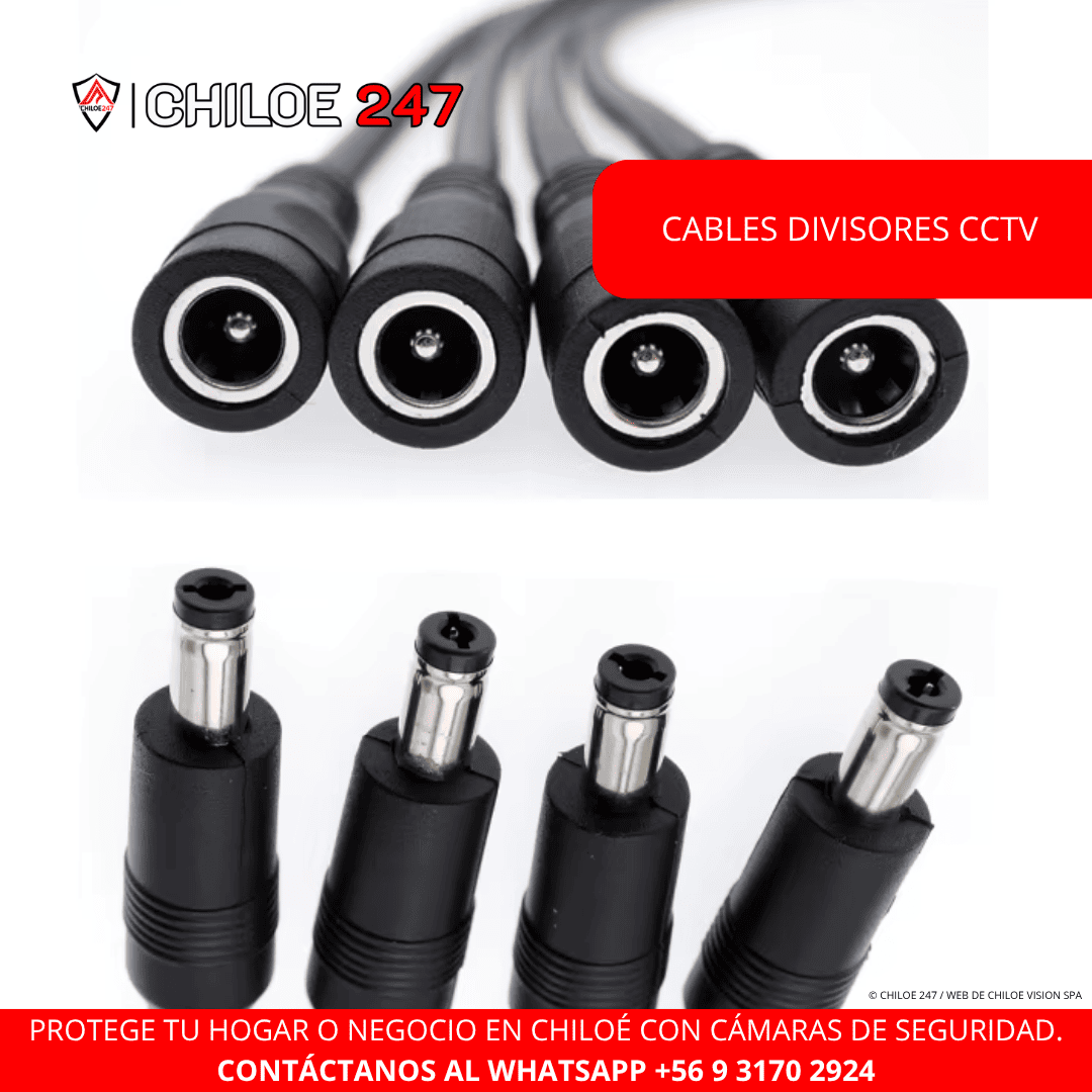 Los cables divisores CCTV son accesorios esenciales para cualquier sistema de videovigilancia. Permiten alimentar varias cámaras de seguridad desde una sola fuente de corriente, evitando el uso de múltiples adaptadores y manteniendo la instalación ordenada y eficiente. Disponibles en diferentes configuraciones como 2 en 1, 4 en 1 y 8 en 1, los cables divisores tipo pulpo cuentan con conectores DC hembra a macho, garantizando una distribución estable de energía y compatibilidad con cámaras análogas, AHD, TVI, CVI, DVR, NVR y XVR. En Chiloé, ofrecemos entrega e instalación en todas las localidades principales: Castro, Ancud, Quellón, Chonchi, Puqueldón, Dalcahue, Queilén, Quemchi, Curaco de Vélez, Achao, Quinchao y toda la isla, asegurando que tu sistema de seguridad funcione de manera confiable y continua.
